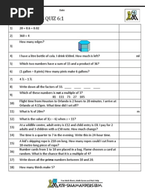 Mental Maths Year 6 1 Pdf Pint Alcoholic Drinks