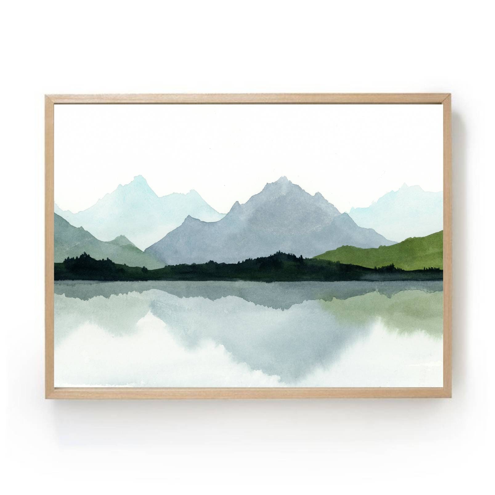 Mountain Lake Watercolor Fine Art Print Blue Green Mountains Etsy Canada